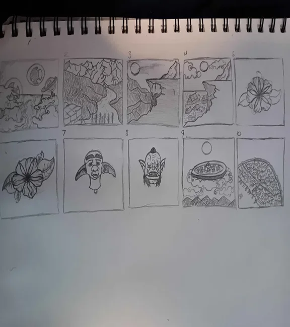These were the initial concept sketches that helped me shape how I wanted the world to be seen the atmosphere, the environment, and the feeling I wanted Eric to embody.